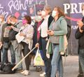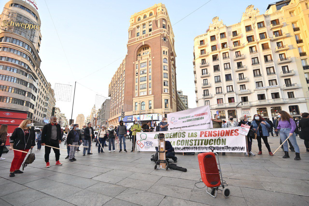 La concejal de Recupera Madrid, Marta Higueras, se han sumado esta tarde a la concentración semanal en la plaza de Callao convocada por la Mesa por el Blindaje de las Pensiones en la Constitución.