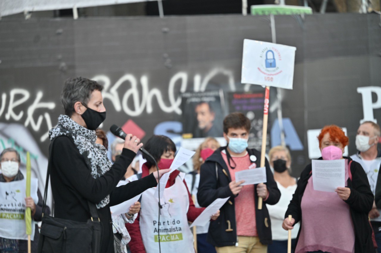 La concejal de Recupera Madrid, Marta Higueras, se han sumado esta tarde a la concentración semanal en la plaza de Callao convocada por la Mesa por el Blindaje de las Pensiones en la Constitución.