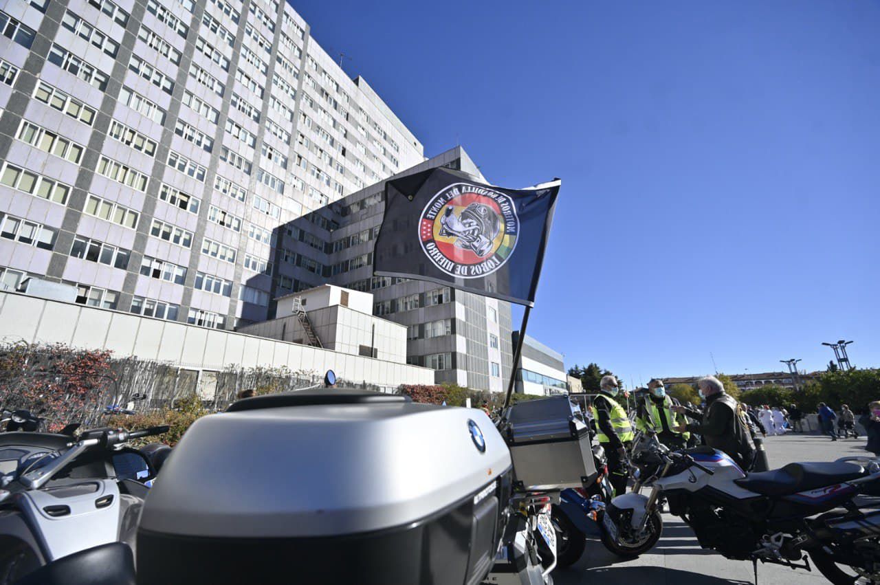 Moteros en sus Harley Davidson visitan el Hospital La Paz