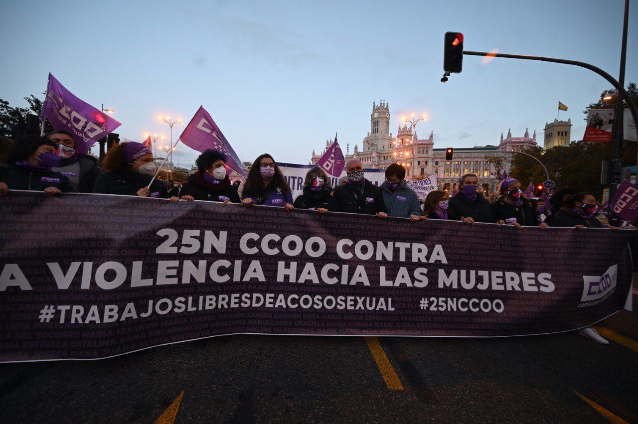 Una de las movilizaciones que ha tenido mayor seguimiento ha sido la marcha convocada por el Consejo de Mujeres de Madrid que ha discurrido entre la plaza Cibeles y la Puerta del Sol y ha contado con presencia de sindicatos y asociaciones feministas.
