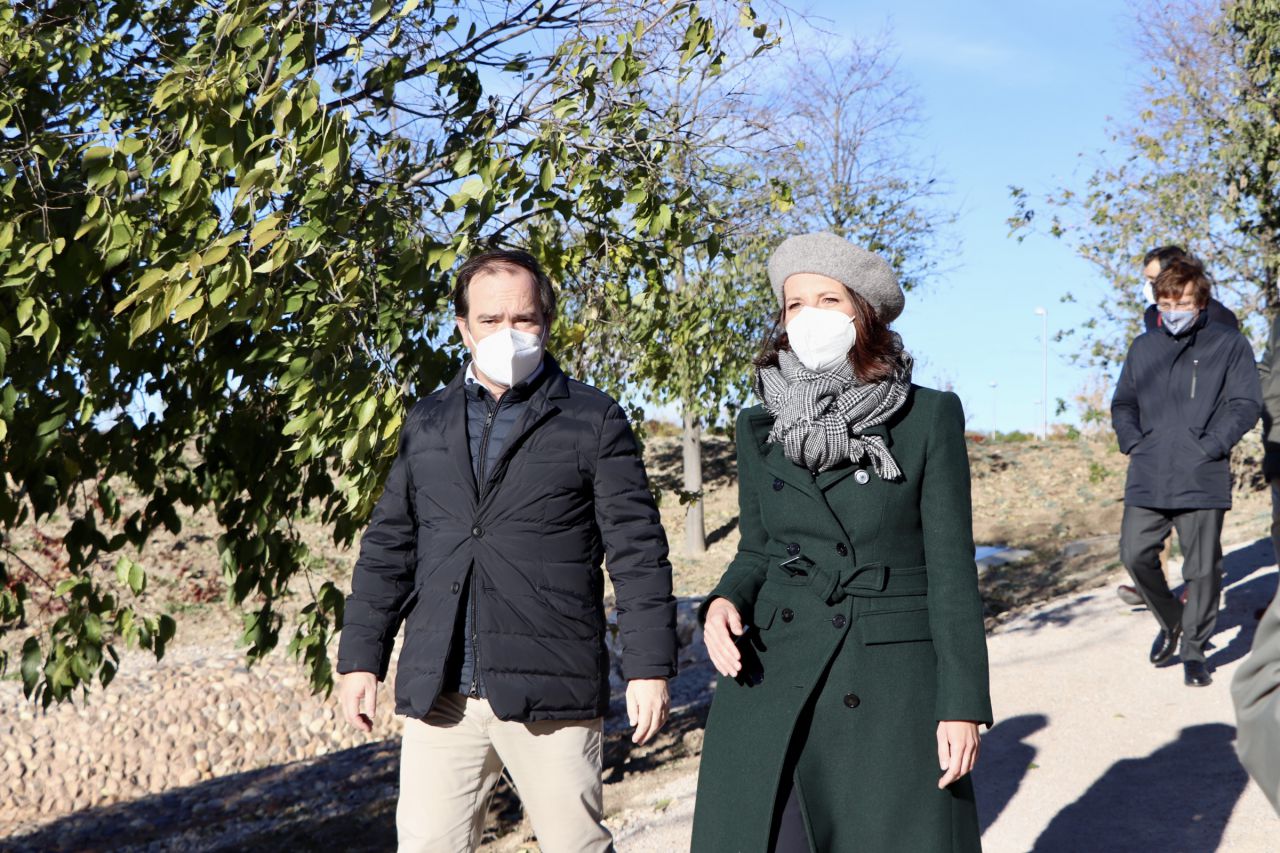El alcalde de Madrid, José Luis Martínez-Almeida, acompañado por el delegado de Medio Ambiente y Movilidad, Borja Carabante, y la concejala del distrito de Villa de Vallecas, Concha Chapa, inauguran el parque de la Gavia.
