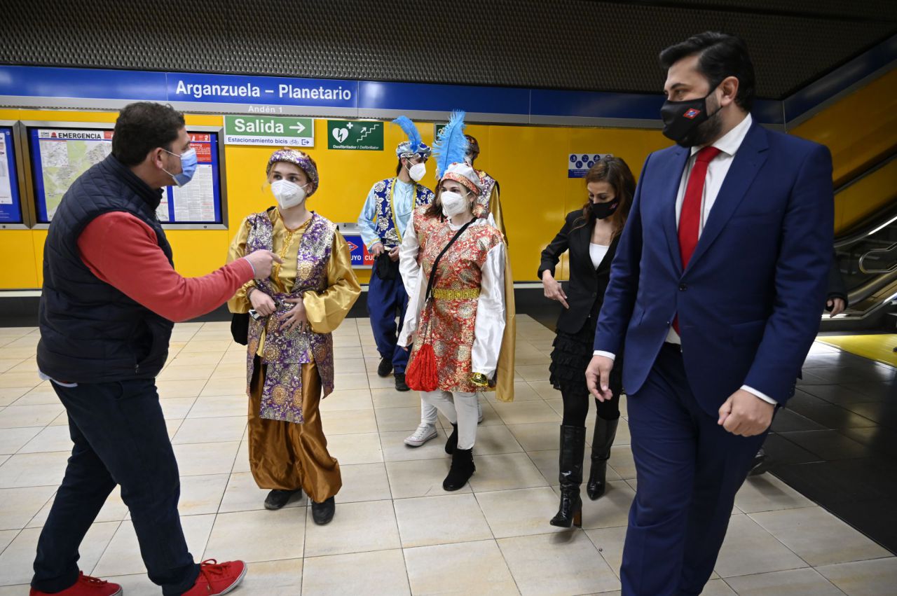 Sus Majestades los Reyes Magos de Oriente en el Tren de la Navidad que circula por la línea 6 de Metro