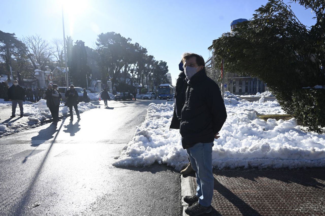 El alcalde de Madrid, José Luis Martínez-Almeida, visita el parque de El Retiro para comprobar los desperfectos ocasionados por el temporal ´Filomena´