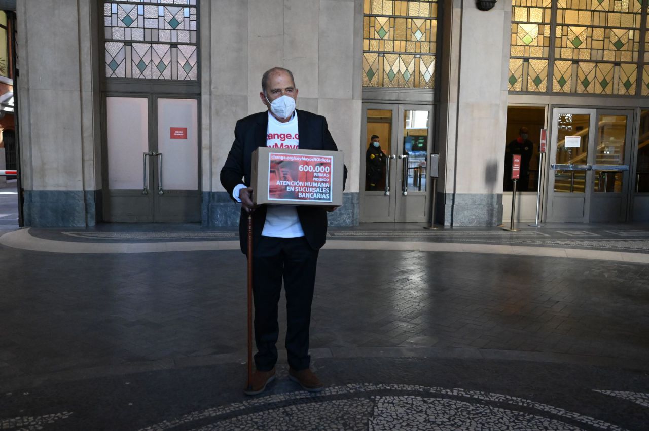 Carlos San Juan, el hombre de 78 años que reclama un "trato más humano" por parte de los bancos, ha realizado este martes la entrega simbólica de las 600.000 firmas recogidas en la campaña 'Soy mayor, no idiota'.
