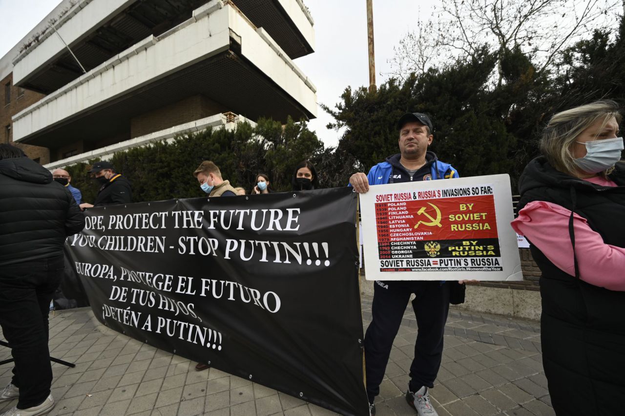 Era el momento más temido tras semanas de diplomacia fallida y ha llegado. Rusia ha iniciado la guerra esta madrugada del miércoles al jueves entrando en territorio ucraniano. En Madrid, los ciudadanos ucranianos se han manifestado ante la Embajada de Rusia.