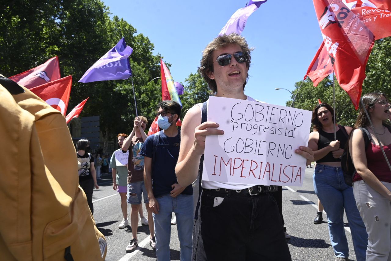 Diversos colectivos de izquierdas han marchado este domingo por las calles de la capital para protestar contra la cumbre de la OTAN que tendrá lugar en Madrid los próximos 29 y 30 de junio.
