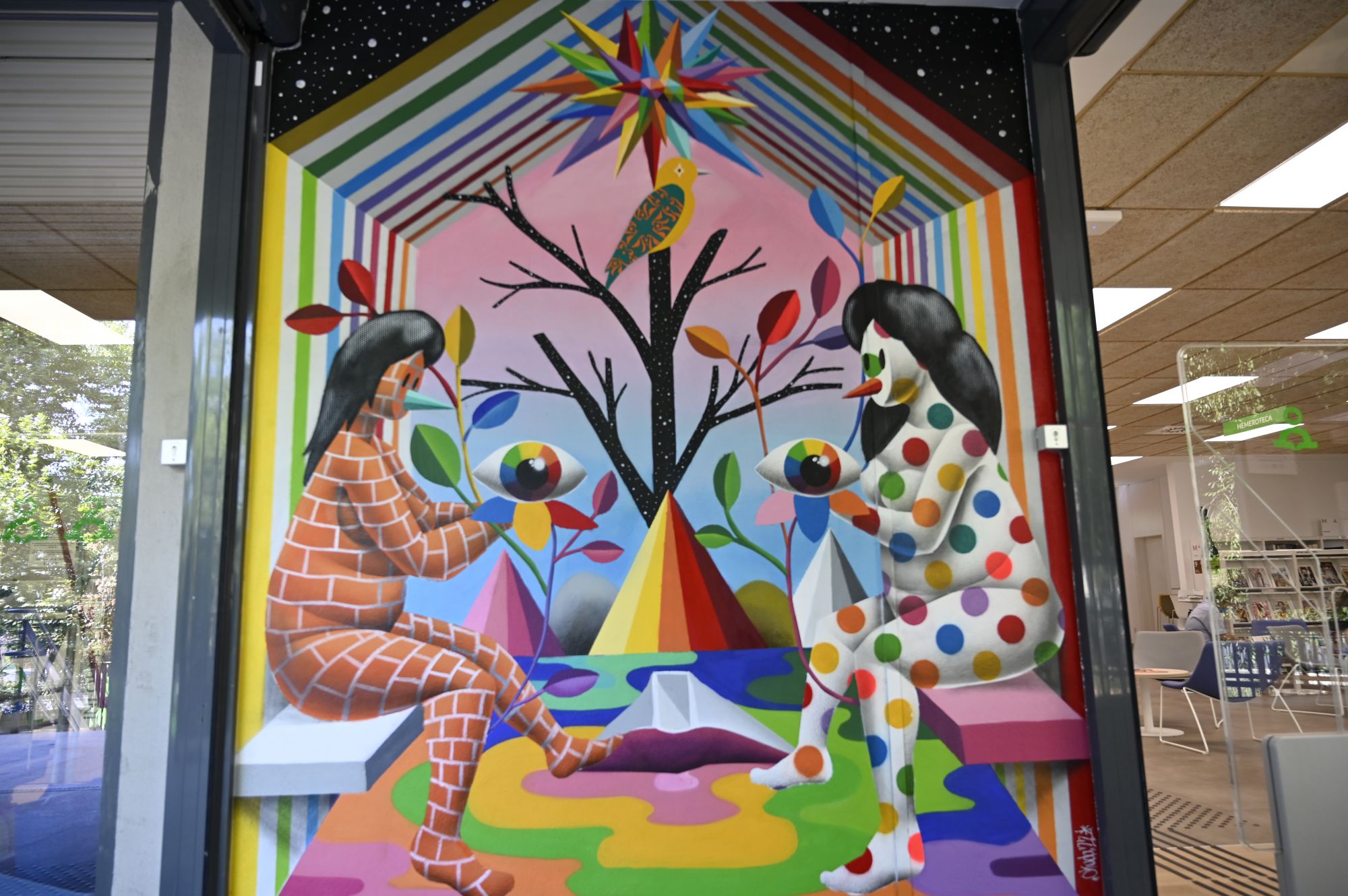 El arte de Okuda se instala en la Biblioteca de San Fermín
