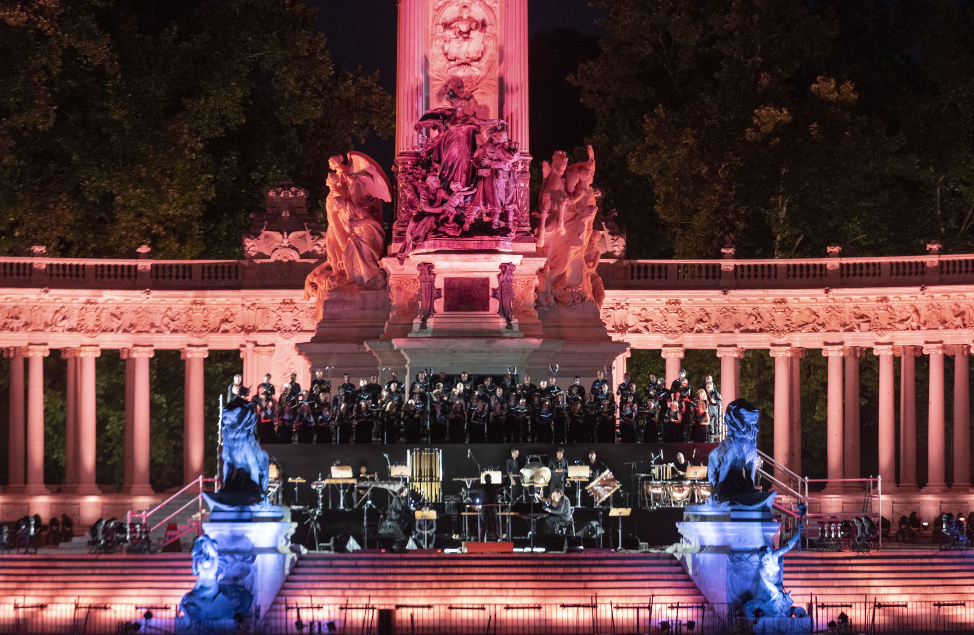 El parque del Retiro revivió jornadas artísticas de décadas anteriores para el espectáculo final de los Veranos de la Villa 2022. Ante el grandioso monumento dedicado a Alfonso XII (que se inauguró el año 1922 después de una larga y complicada génesis) el Coro Nacional de España y sus solistas interpretaron la cantata Carmina Burana, de Carl Off. Se hizo con acompañamiento de pianos y el Grupo Neopercusión. Jesús Campo Ibáñez y Ángel Huidobro Vega tocaron los pianos. Miguel Ángel García Cañamero dirigió al conjunto. Como propina, ante los aplausos entusiastas, interpretaron una breve reducción de la Oda a la alegría, de la Novena Sinfonía.