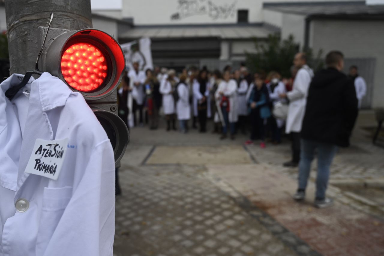 En el cuarto día de huelga indefinida de los médicos de la Atención Primaria, el sindicato Amyts ha querido mostrar su fuerza mediante un recorrido por cuatro centros de salud repartidos por la geografía capitalina.