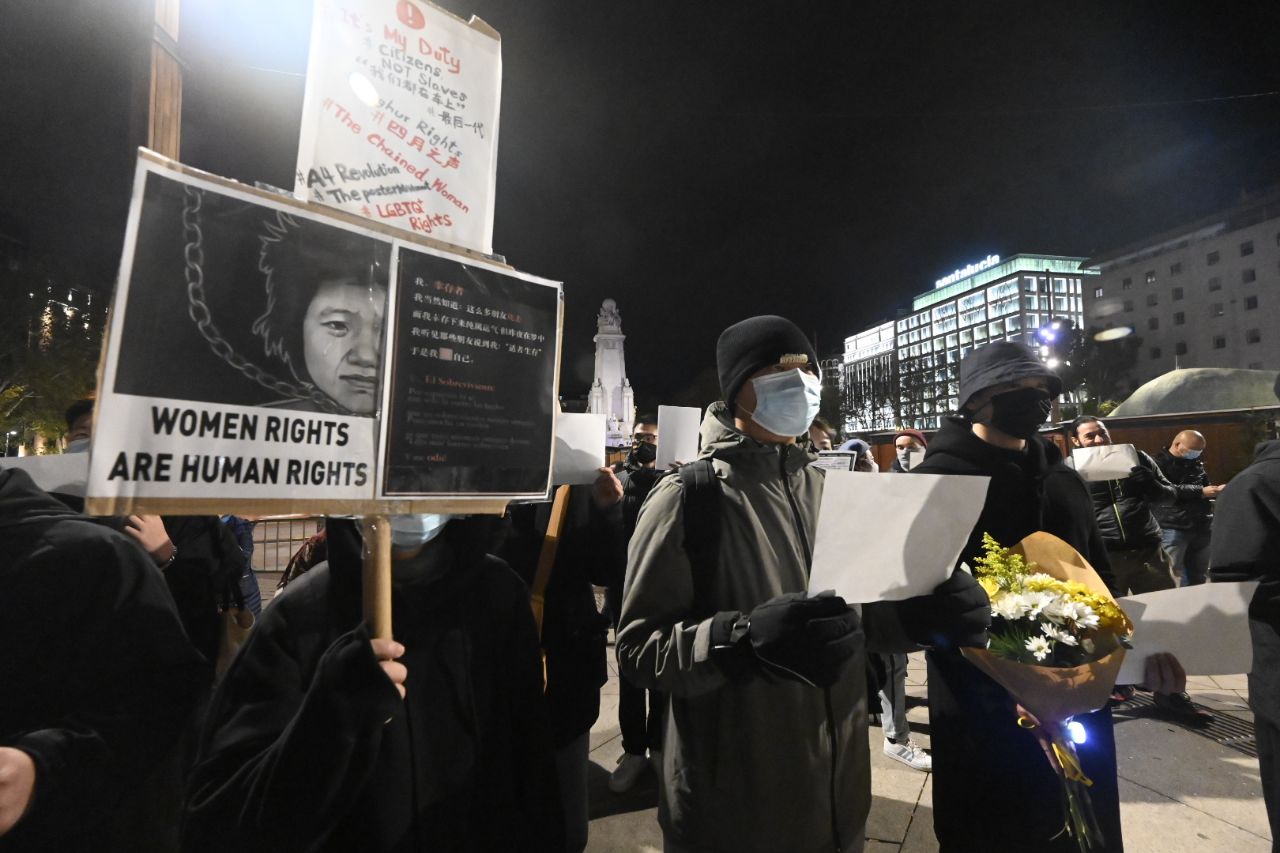 Folios en blanco en Plaza de España contra las severas medidas anticovid en China