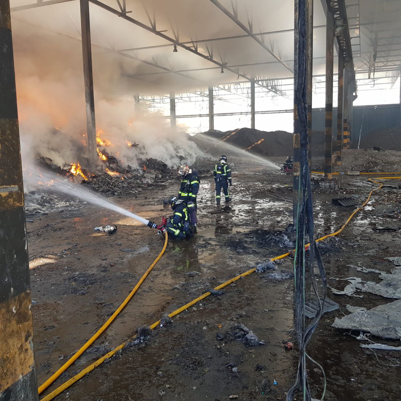 Un total de 16 dotaciones de Bomberos del Ayuntamiento de Madrid están trabajando en un incendio originado en una nave de basuras del Centro de Tratamiento de Residuos Las Lomas en Valdemingómez