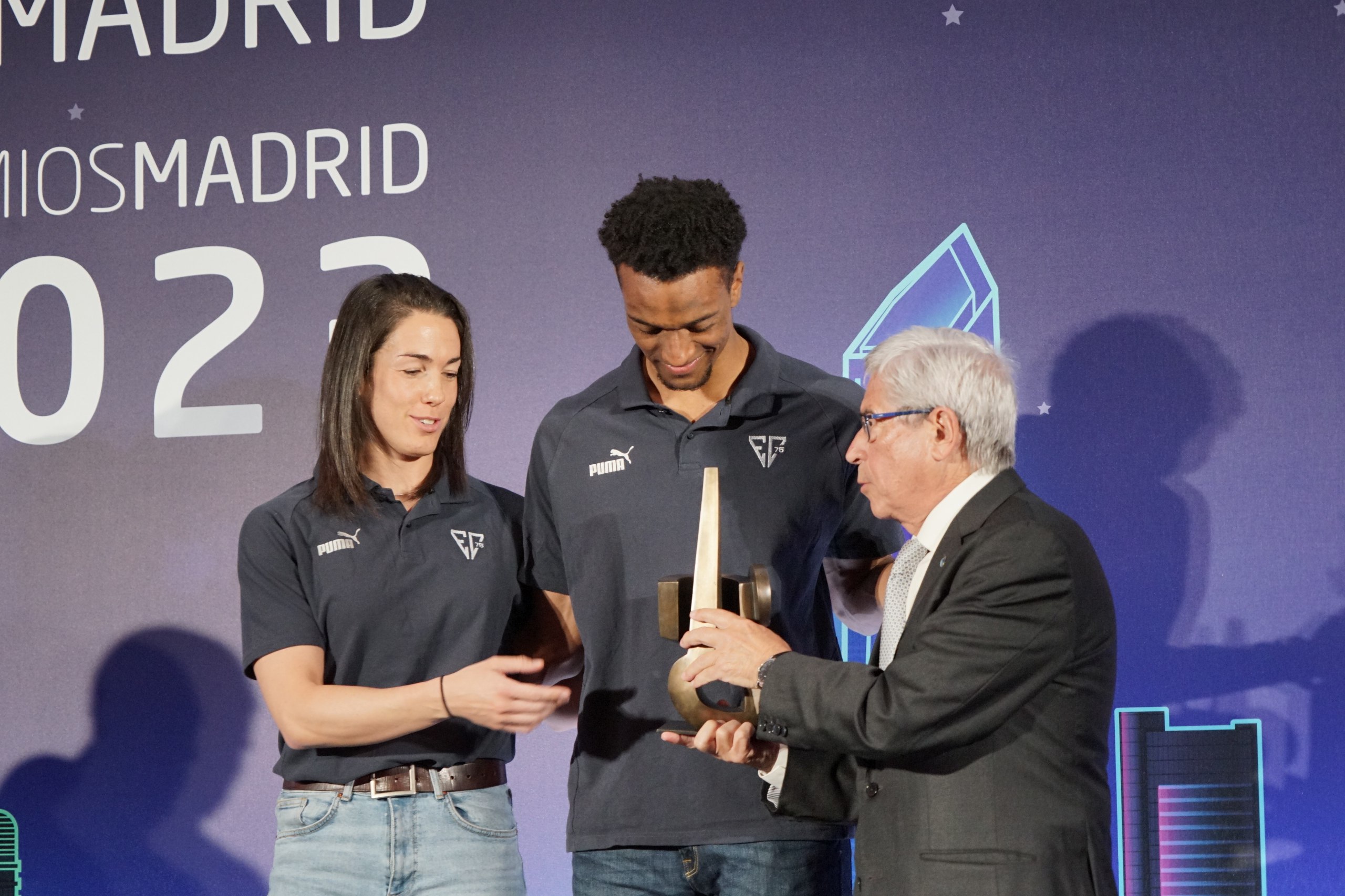 El presidente del Estudiantes, Miguel Ángel Bufalá, y los capitanes de sus equipos masculino y femenino