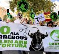 El Partido Animalista PACMA ha celebrado su manifestación anual Misión Abolición este sábado en la explanada de Las Ventas de Madrid. El encuentro, en el que se han citado miles de activistas antitaurinos y simpatizantes, ha hecho un recorrido circular por las principales calles colindantes a la plaza de toros al son de cánticos abolicionistas.