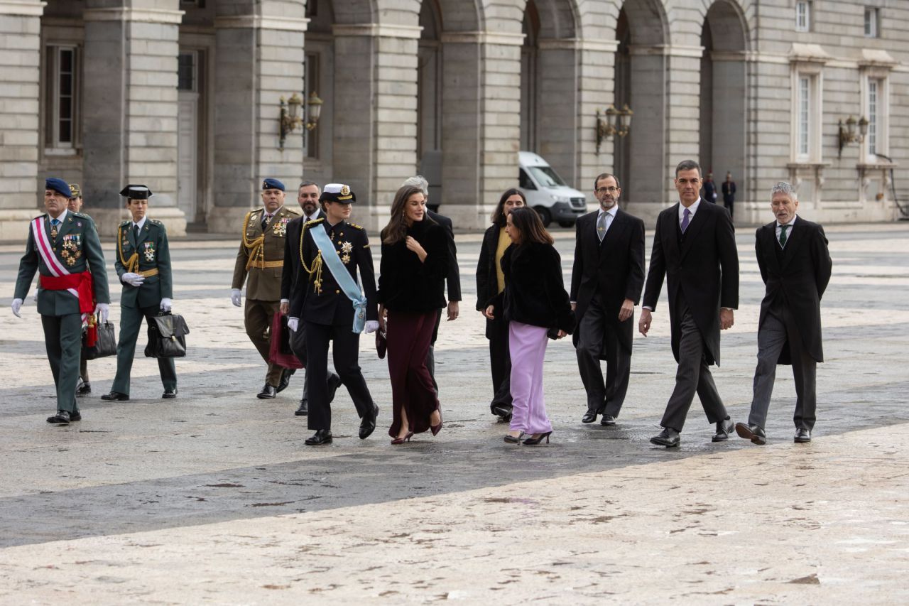 Los Reyes Felipe VI y Letizia han presidido este lunes la tradicional Pascua Militar desde el Palacio Real de la capital. Este acto supone el inicio a su agenda institucional en 2025. Como ya ocurriera el año pasado, los monarcas han estado acompañados por la Princesa de Asturias, quien está inmersa en su formación castrense y el próximo fin de semana se embarcará en el buque escuela 'Juan Sebastián Elcano' para completar su instrucción naval. (117 visitas)