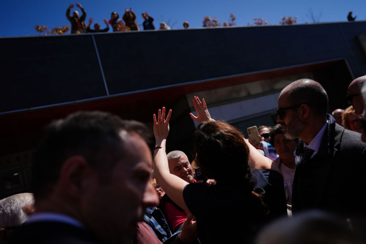 La presidenta de la Comunidad de Madrid, Isabel Díaz Ayuso, ha acudido esta mañana al solemne acto de jura de bandera de civiles en el municipio de Alcobendas, después de su último choque con el Gobierno central