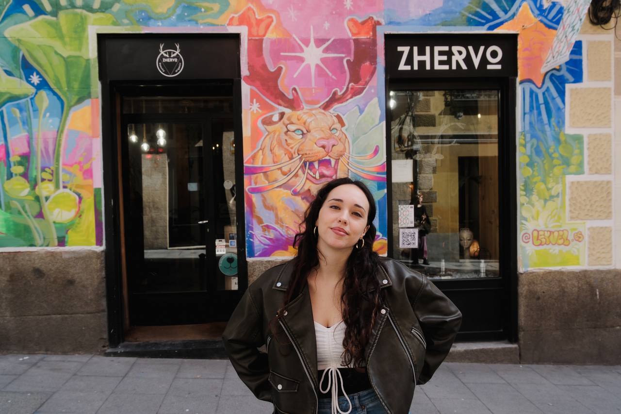 Leyvel posando en su obra de esta edición, en la calle Amparo