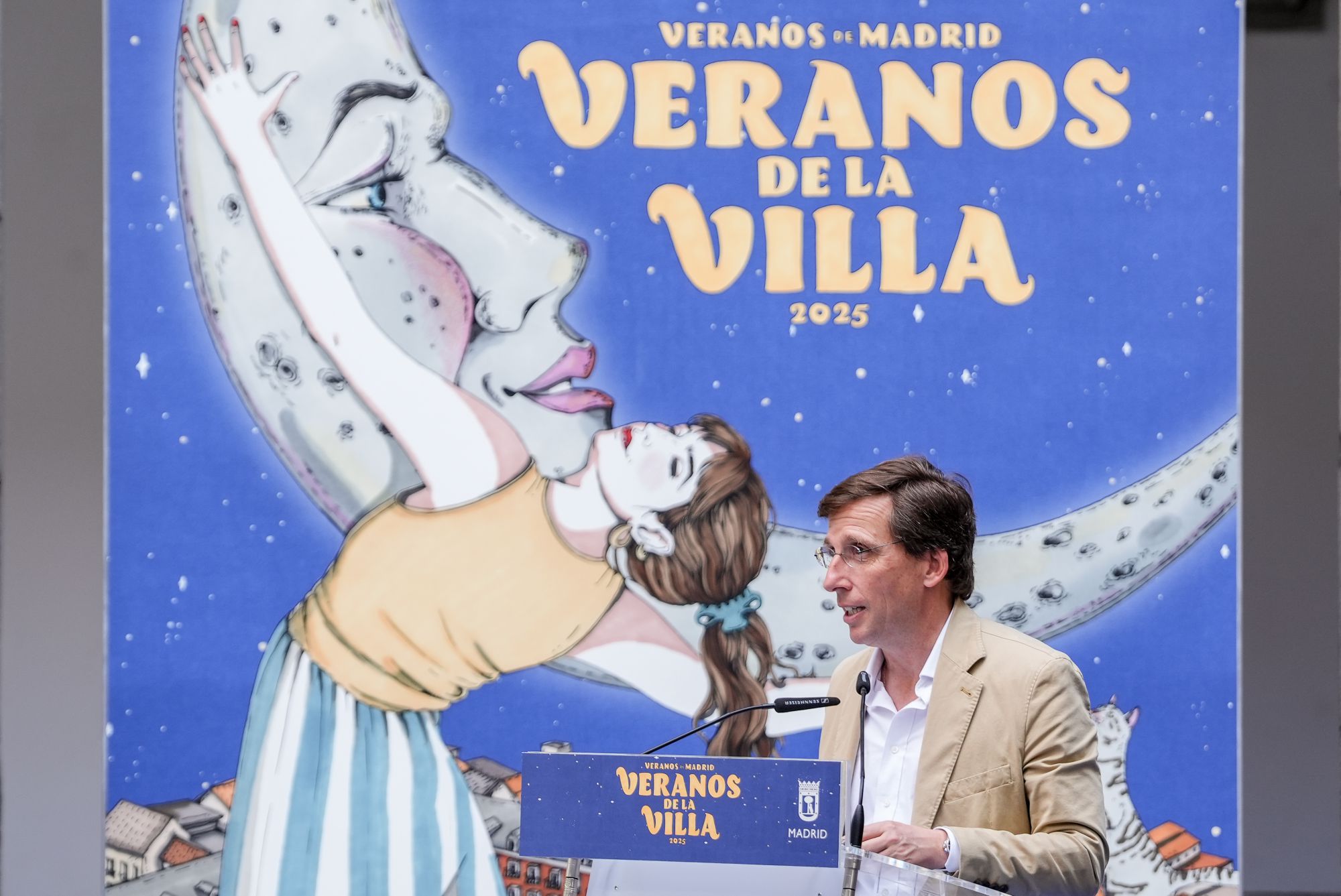 El alcalde de Madrid, José Luis Martínez-Almeida, acompañado por la delegada de Cultura, Turismo y Deporte, Marta Rivera de la Cruz, ha presentado hoy, en el Claustro del Pozo del Instituto de Educación Secundaria San Isidro, la 41ª edición de Veranos de la Villa, una de las citas estivales más esperadas.