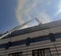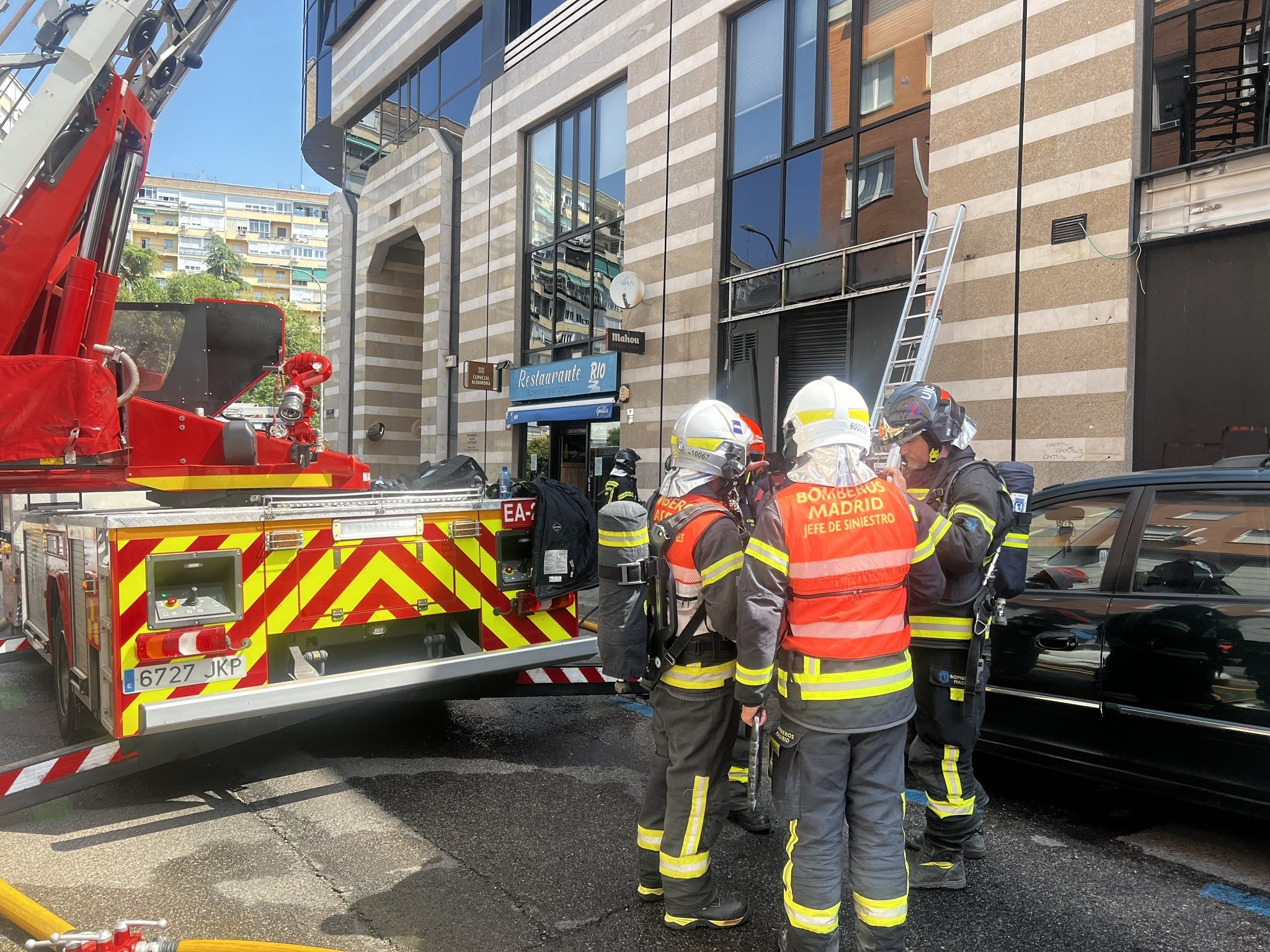 Bomberos del Ayuntamiento de Madrid están trabajando en un incendio en unos locales comerciales de la calle Raquel Meller, en el distrito de Ciudad Lineal, que ha provocado una gran columna de humo muy visible en la capital.