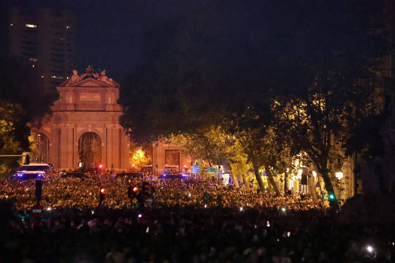 Madrid ha activado este sábado su alumbrado navideño con un despliegue de más de 13 millones de bombillas LED, 7.134 cadenetas, 126 cerezos luminosos y trece grandes abetos que llenarán de luz la capital durante 46 días.