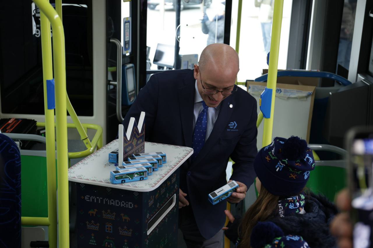 Este martes, en la plaza de Cibeles, el bus de la Navidad de EMT Madrid ha contado con la presencia del alcalde de Madrid, José Luis Martínez-Almeida, quien ha estado acompañado por Borja Carabante, delegado de Urbanismo, Medio Ambiente y Movilidad.