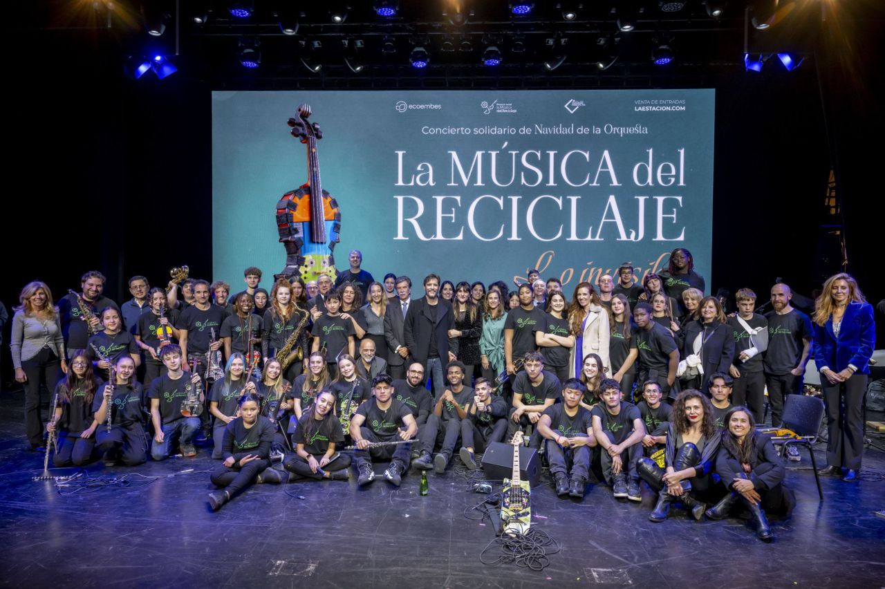 Los jóvenes músicos en situación de vulnerabilidad que forman parte de la orquesta de Ecoembes La Música del Reciclaje protagonizaron su tradicional concierto solidario de Navidad en el Gran Teatro CaixaBank Príncipe Pío, en Madrid, donde conquistaron al público con instrumentos fabricados a partir de materiales reciclados.