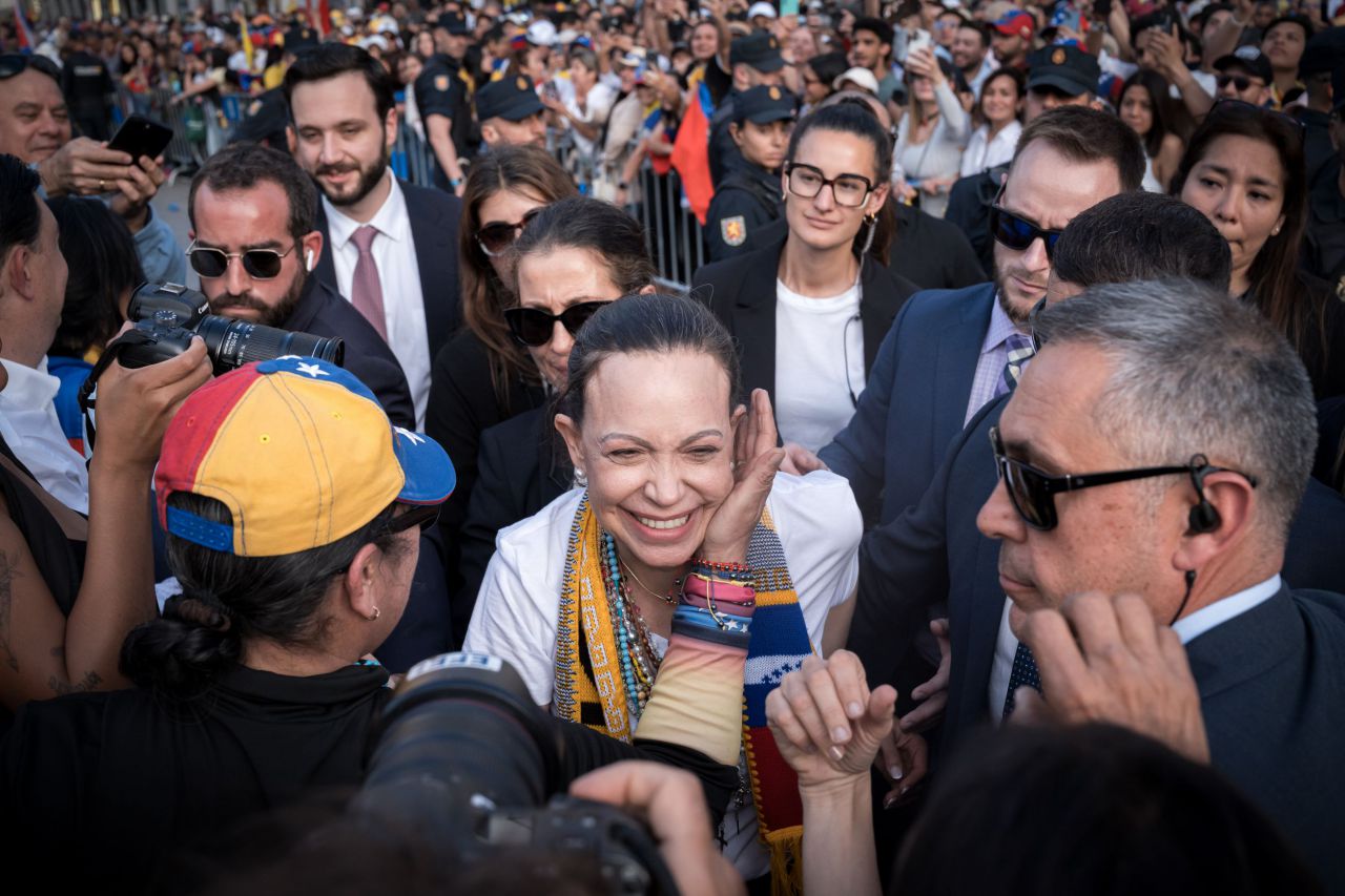 Unas 11.000 personas, según la Delegación del Gobierno, se concentraron este sábado en la Puerta del Sol para recibir a la líder opositora venezolana María Corina Machado, que recibía la Medalla de Oro de la Comunidad de Madrid. (137 visitas)