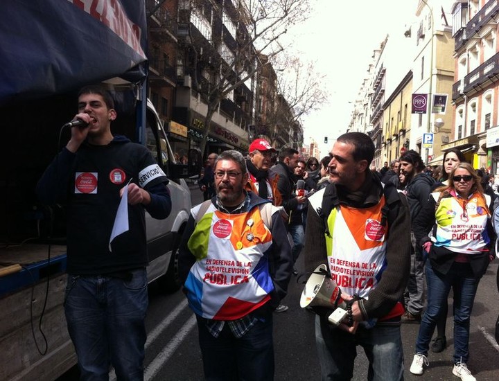 Los trabajadores de Telemadrid se unen a los estudiantes en su protesta.
