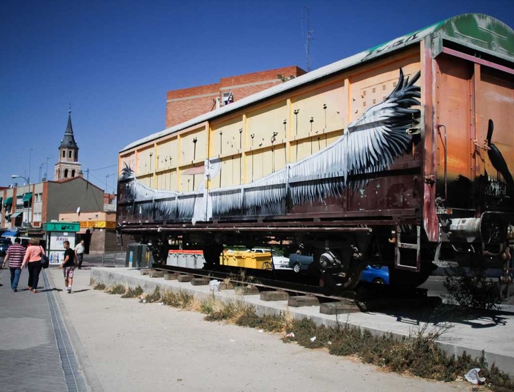 Vagón de tren en la calle Sierra Gorda.