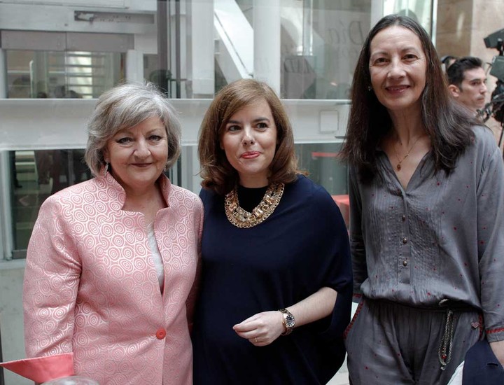 Carmen Balfagón, secretaria general técnica de Asuntos Sociales, con la vicepresidenta del Gobierno, Soraya Sáenz de Santamaría, y Luz Palomo, jefa de prensa de la Consejería de Asuntos Sociales