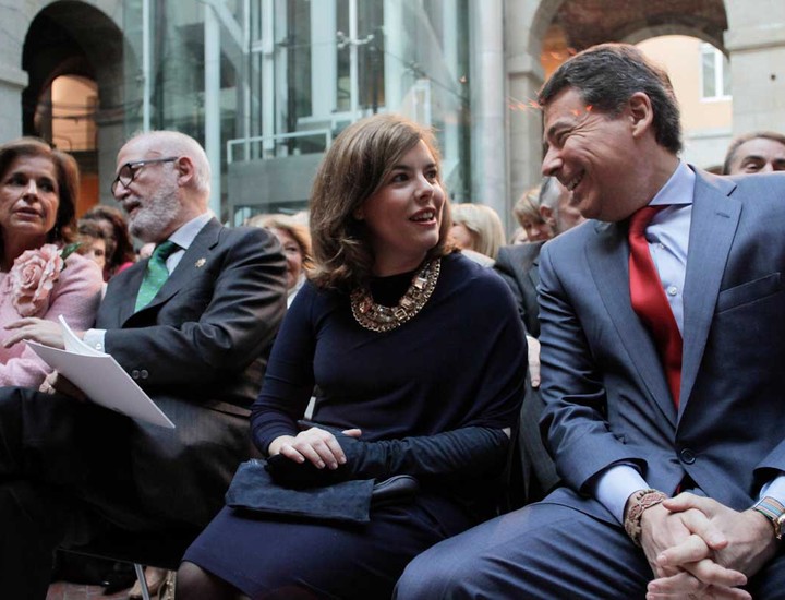 La alcaldesa de Madrid, Ana Botella; el presidente de la Asamblea de Madrid, José Ignacio Echeverría; la vicepresidenta del Gobierno, Soraya Sáenz de Santamaría; y el presidente de la Comunidad de Madrid, Ignacio González