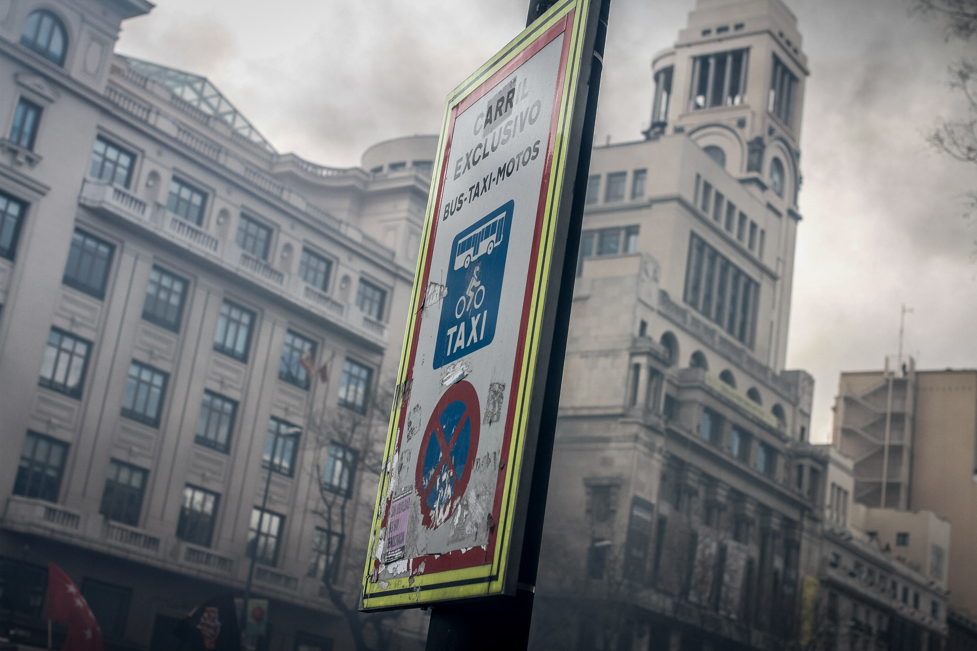 Taxistas procedentes de distintos puntos de España protestan por su "precarización" y exigen la regularización del sector en una manifestación marcada por el lanzamiento de petardos y bengalas en las calles de Madrid.