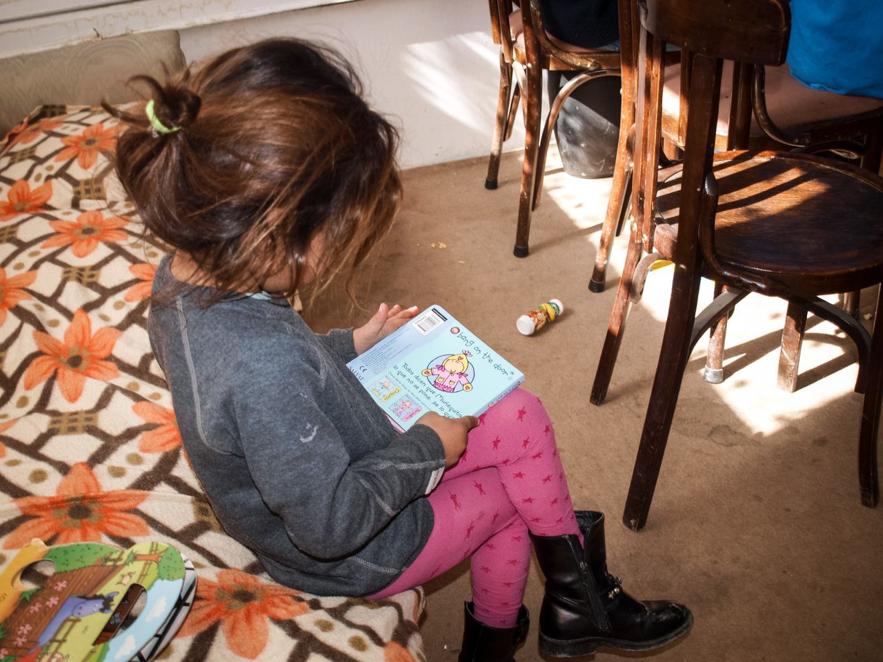 Niña de El Gallinero leyendo un libro en la escuela infantil