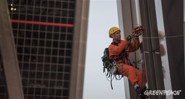 Greenpeace escala una de las Torres KIO para protestar contra el TTIP