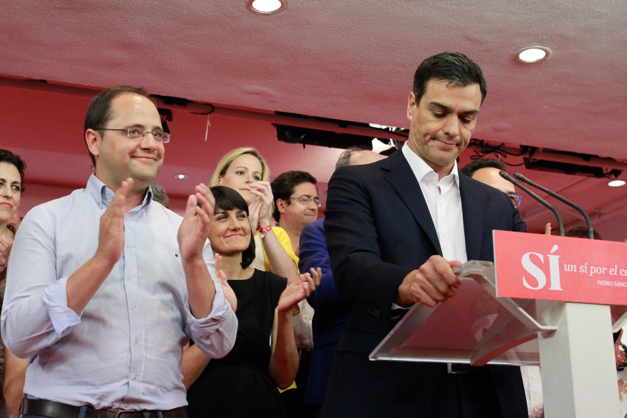 Comparecencia de Pedro Sánchez junto a su ejecutiva para valorar los resultados del PSOE en las elecciones generales del 26J.