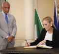 Cifuentes firmando el libro de condolencias de la Embajada de Italia.