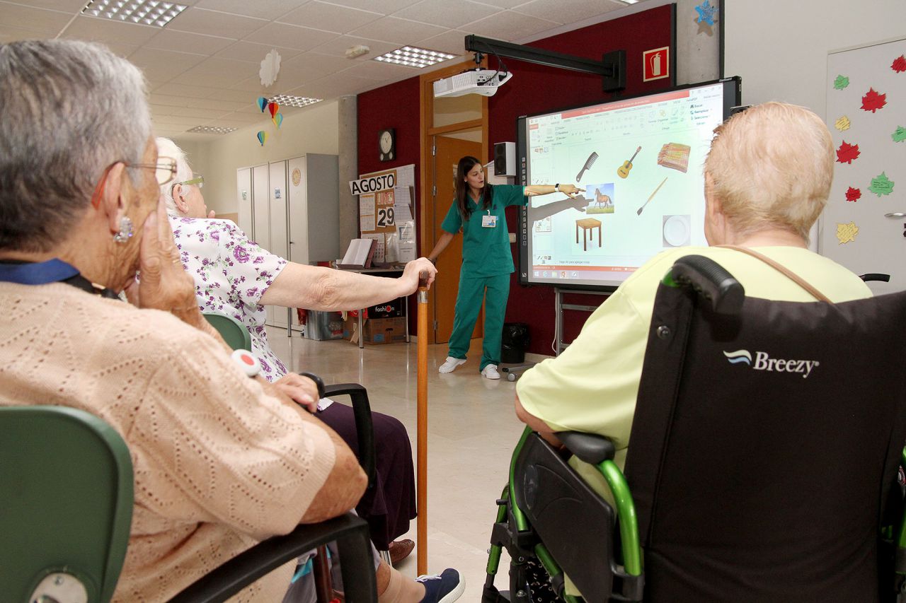Usuarios del Centro de Día municipal Parque Querol utilizan las nuevas tecnologías en sus actividades diarias en el centro.