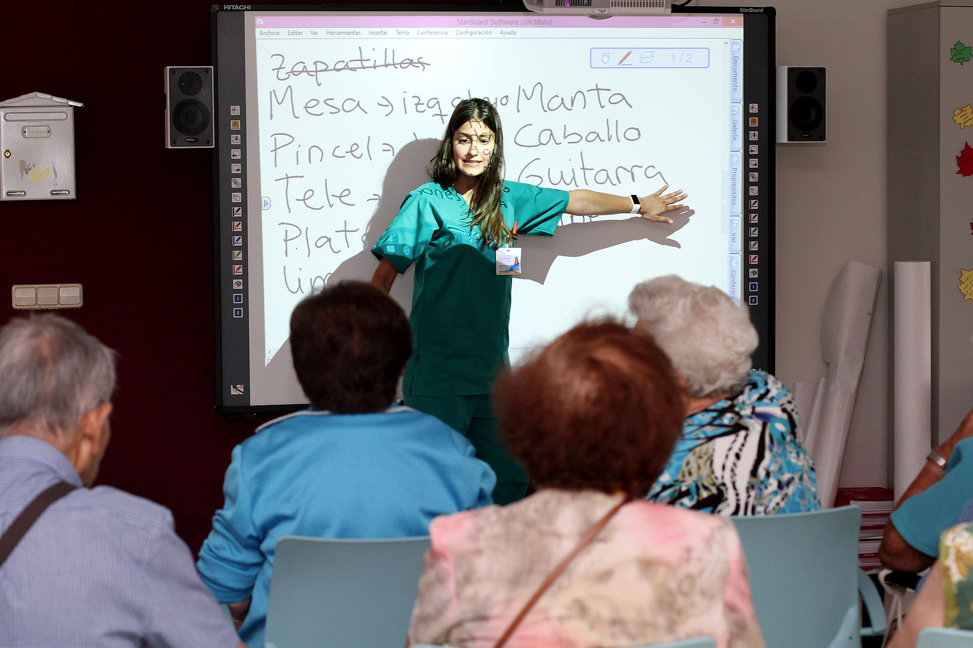 Usuarios del Centro de Día municipal Parque Querol utilizan las nuevas tecnologías en sus actividades diarias en el centro.