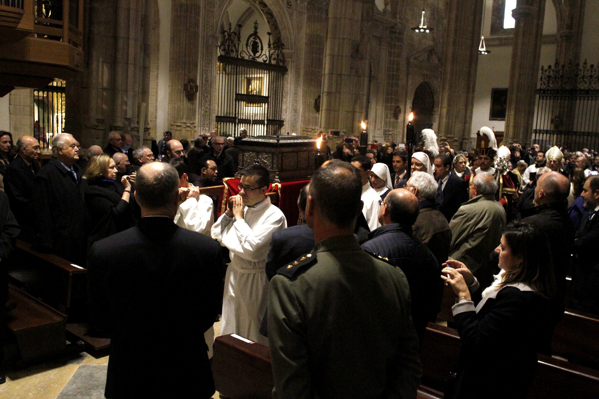 Los restos del cardenal Cisneros se han trasladado este martes a la girola de la catedral de Alcalá de Henares cuando se cumplen 500 años de su muerte, junto a un relieve conmemorativo obra del escultor Julio López.