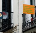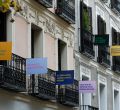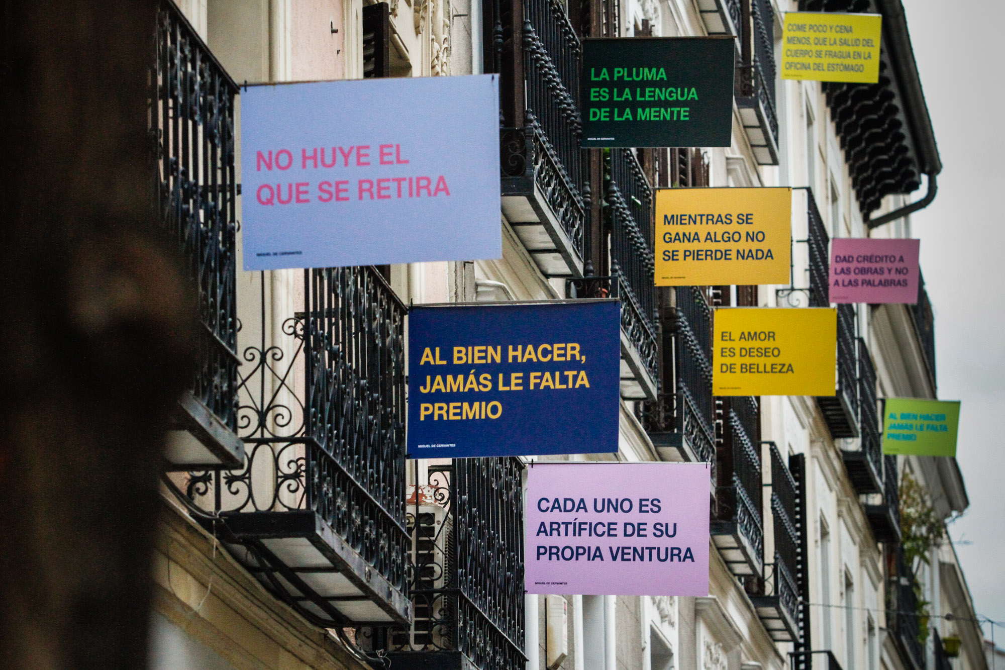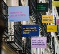 Los vecinos de la céntrica calle Justiniano se unen a las conmemoraciones por el cuarto centenario de la muerte de Miguel de Cervantes sacando a los balcones frases extraídas del Quijote.