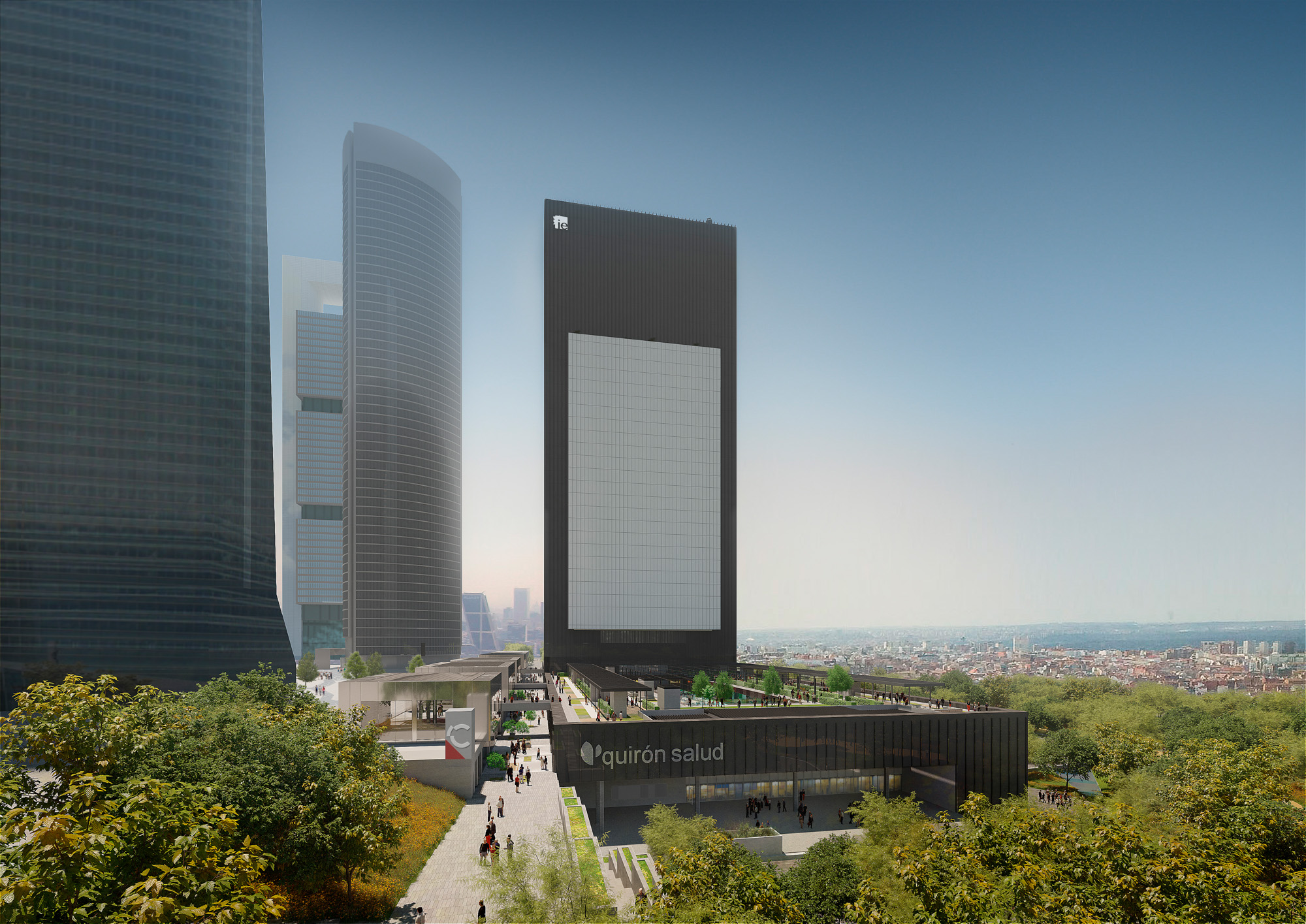 Caleido es el nombre que recibirá la quinta torre de la Castellana, que estará construida en 2019. Albergará un campus universitario del Instituto de Empresa y un hospital Quirón. Este es el aspecto que tendrá.