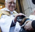 Festividad de San Antón en honor a San Antonio Abad en la que miles de madrileños llevan a sus mascotas a que las bendigan los curas de la iglesia de San Antón en la calle de Hortaleza.