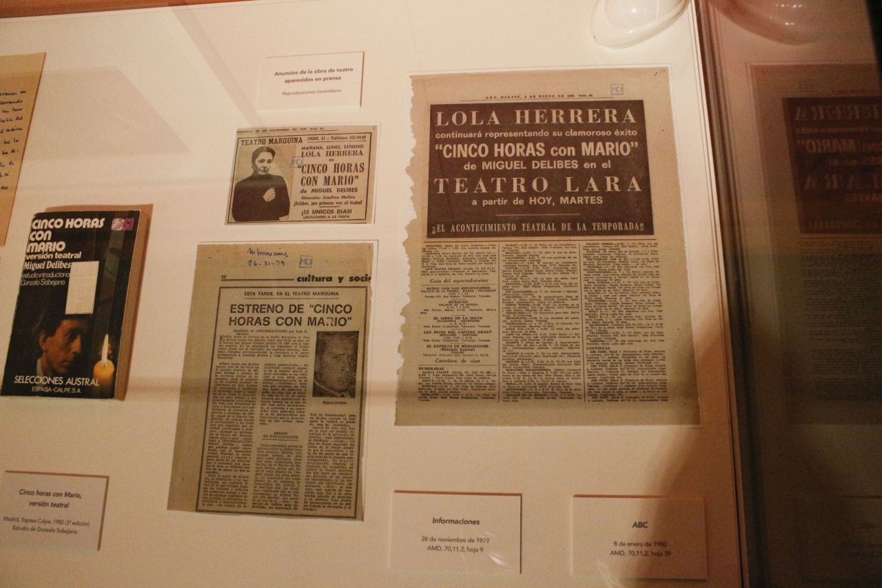 Hasta el 2 de mayo, la Biblioteca Nacional de España acoge la exposición Cinco horas con Mario: cincuenta años de historia, una muestra conmemorativa del cincuenta aniversario de una de las más representativas novelas de Miguel Delibes en la que se podrá contemplar desde la correspondencia mantenida entre Delibes y su editor, antes de que la novela llegase a las librerías, hasta el manuscrito de la obra, pasando por las cartas personales dirigidas al escritor, a propósito de su nuevo libro, de algunas de las personalidades del mundo de las letras.