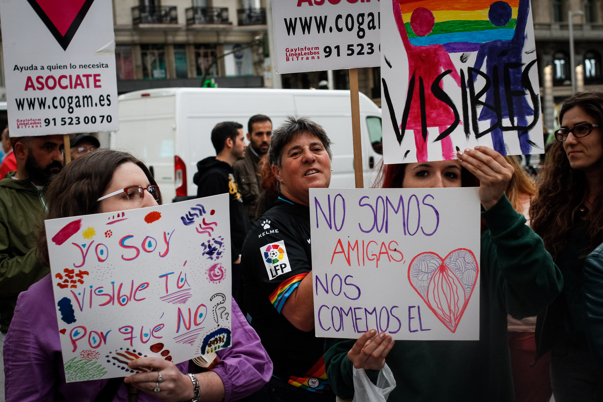 Mujeres de todo tipo de orientación sexual tomaron las calles de la capital este miércoles 26 de abril en el Día de la Visibilidad Lésbica. Madrid fue el escenario de las reivindicaciones más multitudinarias en las que el colectivo homosexual femenino defendió su derecho a amar en libertad. (2017 visitas)