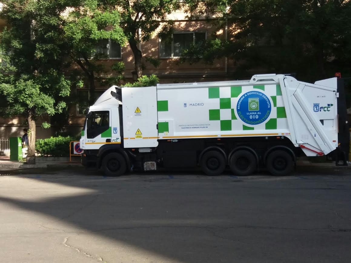 Una dynamicadora de gestión de residuos (de FCC Medio Ambiente) en la glorieta de Rubén Darío