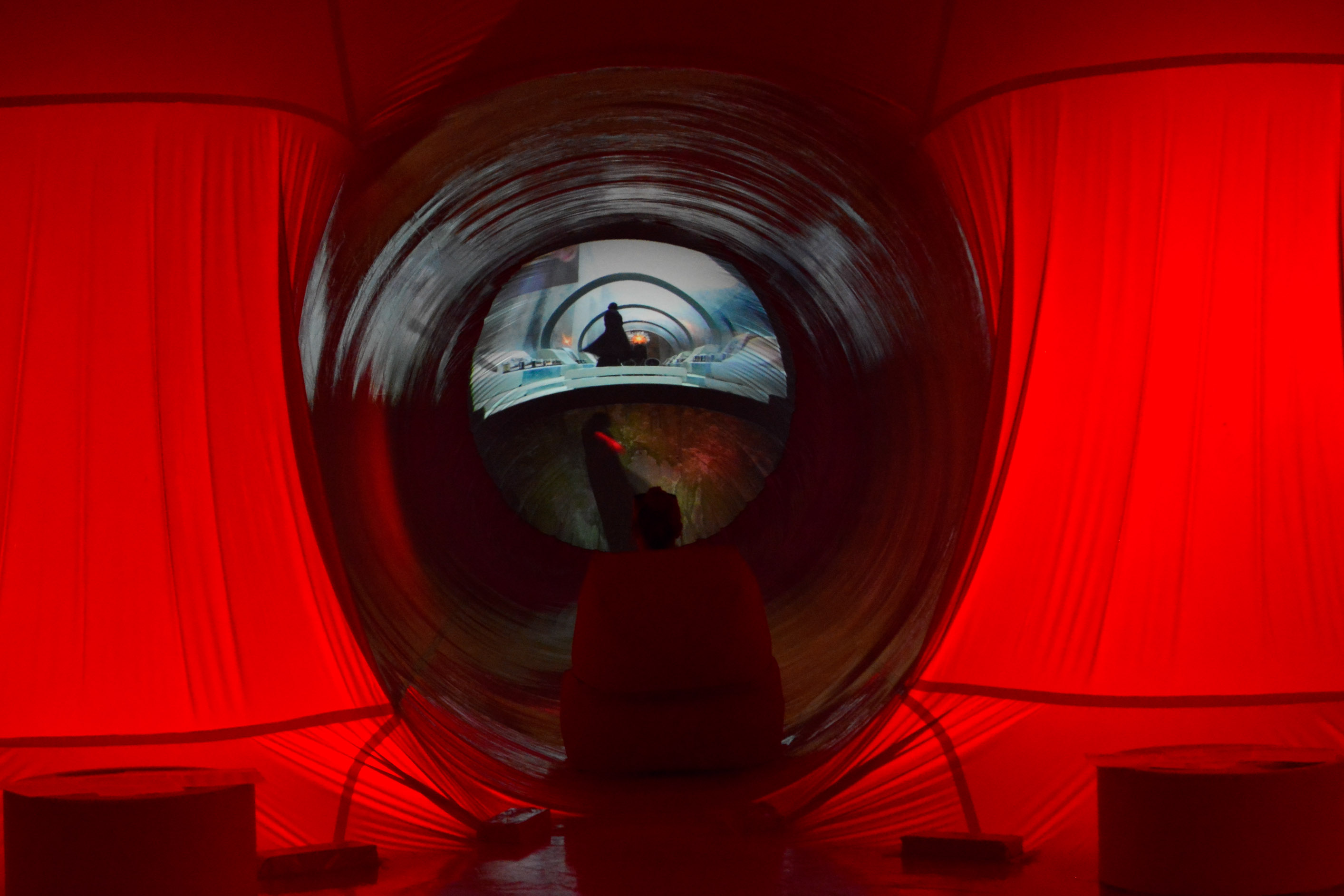 Las Naves de Matadero han presentado la escultura 'Dactiloscopia Rosa', una instalación diseñada por el creador Marco Canevacci, que representa una mano gigante de látex en cuyo interior se repasa el movimiento de liberación sexual LGTBiQ.