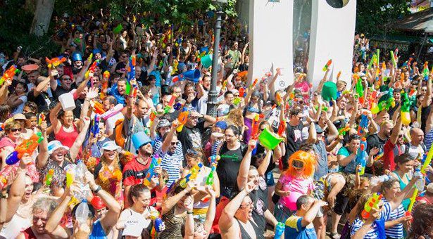 La Batalla Naval de Vallecas ha dejado el distrito "pasado por agua". Además, este año se reivindica como 'puerto de acogida' dedicando el lema de este año a la crisis de los refugiados. Gente de todas las edades se han volcado más que nunca en esta batalla a modo de reivindicación de la crisis de los refugiados.