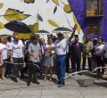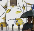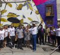 En recuerdo del centenario del nacimiento de Nelson Mandela, Bunthu Fihla ha pintado la flor favorita del presidente sudafricano en la medianera del edificio del número 35 de la calle Mesón de Paredes, en el barrio de Lavapiés.