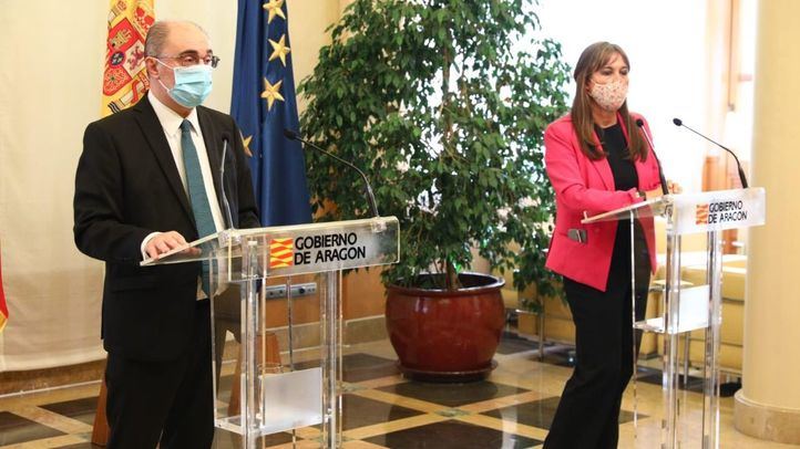 El presidente de Aragón, Javier Lambán, junto a la consejera de Sanidad de la Comunidad Autónoma, Sira Repollés, han anunciado este miércoles que las tres capitales de provincia -Zaragoza, Huesca y Teruel- contarán a partir de las 00:00 de este jueves con un confinamiento perimetral.