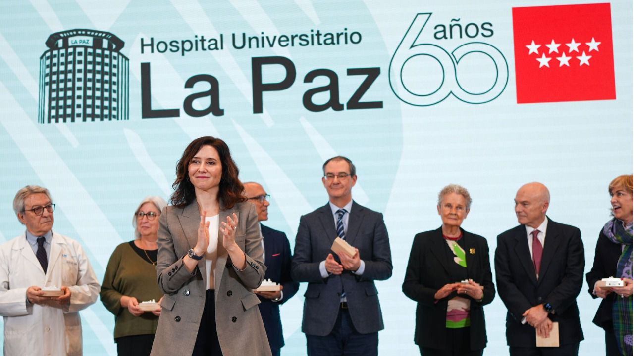 Díaz Ayuso ha agradecido el "honor de celebrar este aniversario tan significativo" y "el trabajo de los cerca de 8.000 profesionales que dan vida a esta institución". Ha definido La Paz como un "hospital de referencia, que es parte de Madrid y emblema de la Sanidad Pública".