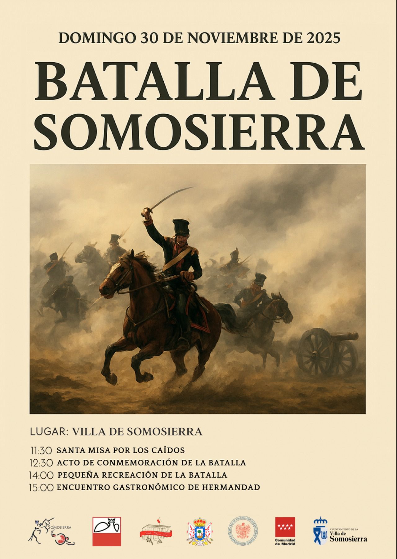 Esta iniciativa llega prácticamente a la par que la recreación de la batalla, que tendrá lugar el próximo domingo, 30 de noviembre. Vecinos y asociaciones especializadas viajan en el tiempo para revivir el enfrentamiento entre las fuerzas españolas y la Grande Armée napoleónica, apoyada por la caballería ligera polaca, a la cual recurrió Napoleón por los problemas para avanzar por la abrupta orografía del terreno.